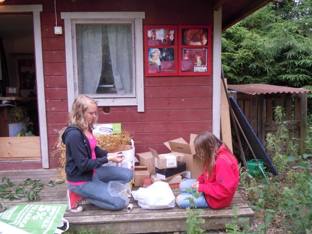 Även hundarna fick leksaker. Här gjordes det märgben gömda i kartonger och toapappersrullar med köttbullar som sedan gömdes i huset. Ett mycket bra sätt att få hundarna nöjda när vi höll kurs.