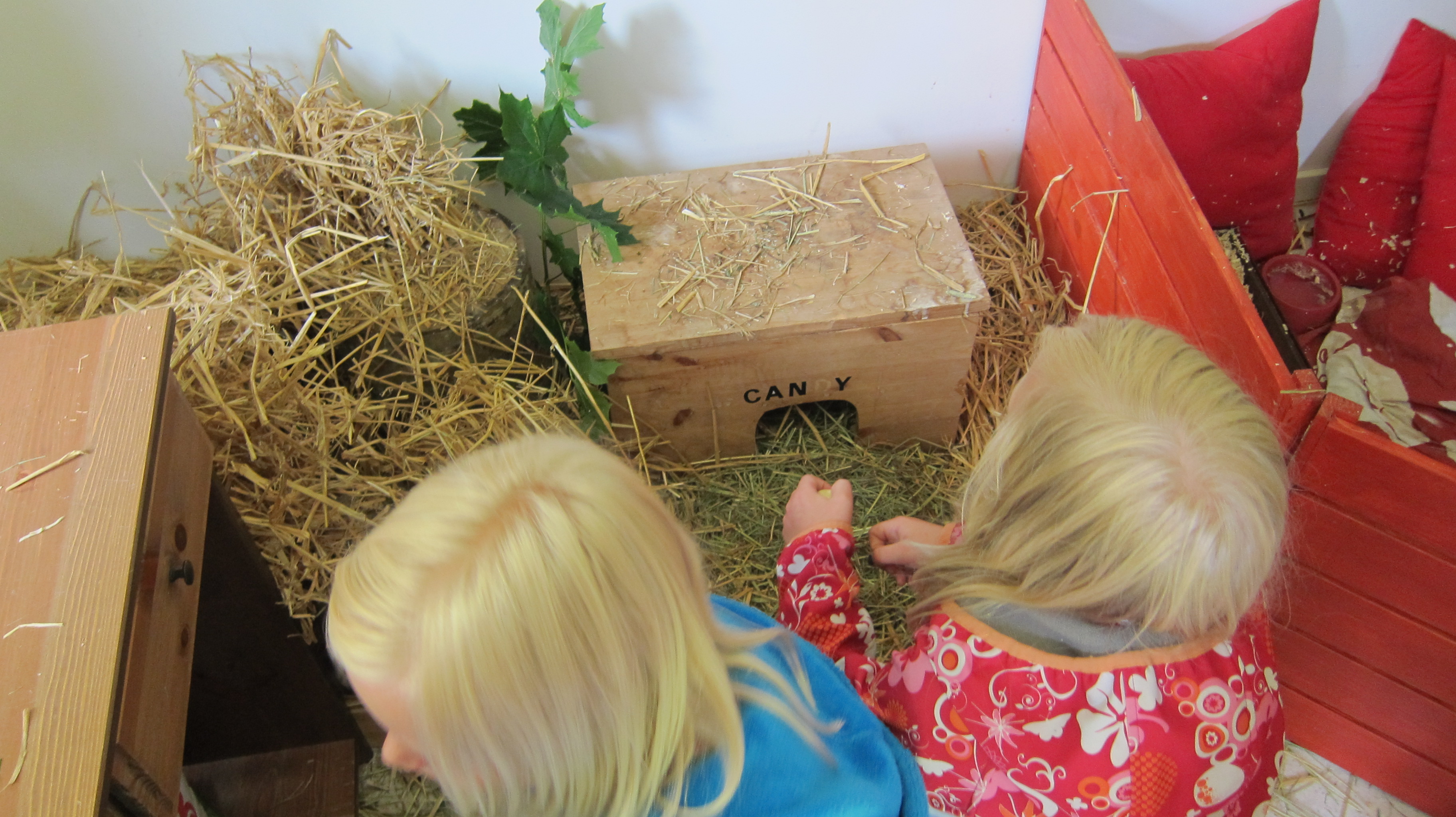 Vi gjorde leksaker till djuren så de skulle ha så roligt som möjligt i sina burar.