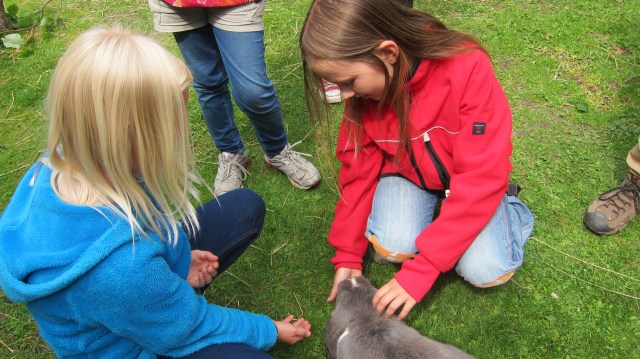 Efter att vi hade lärt oss klickerträningens grunder och om djurens språk gick vi äntligen ut och hälsade på djuren.