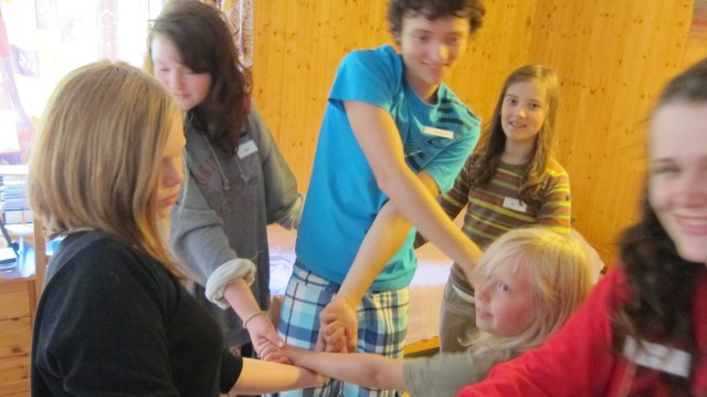Vi började nästa dag med att bland annat försöka vi lösa en knut tillsammans.