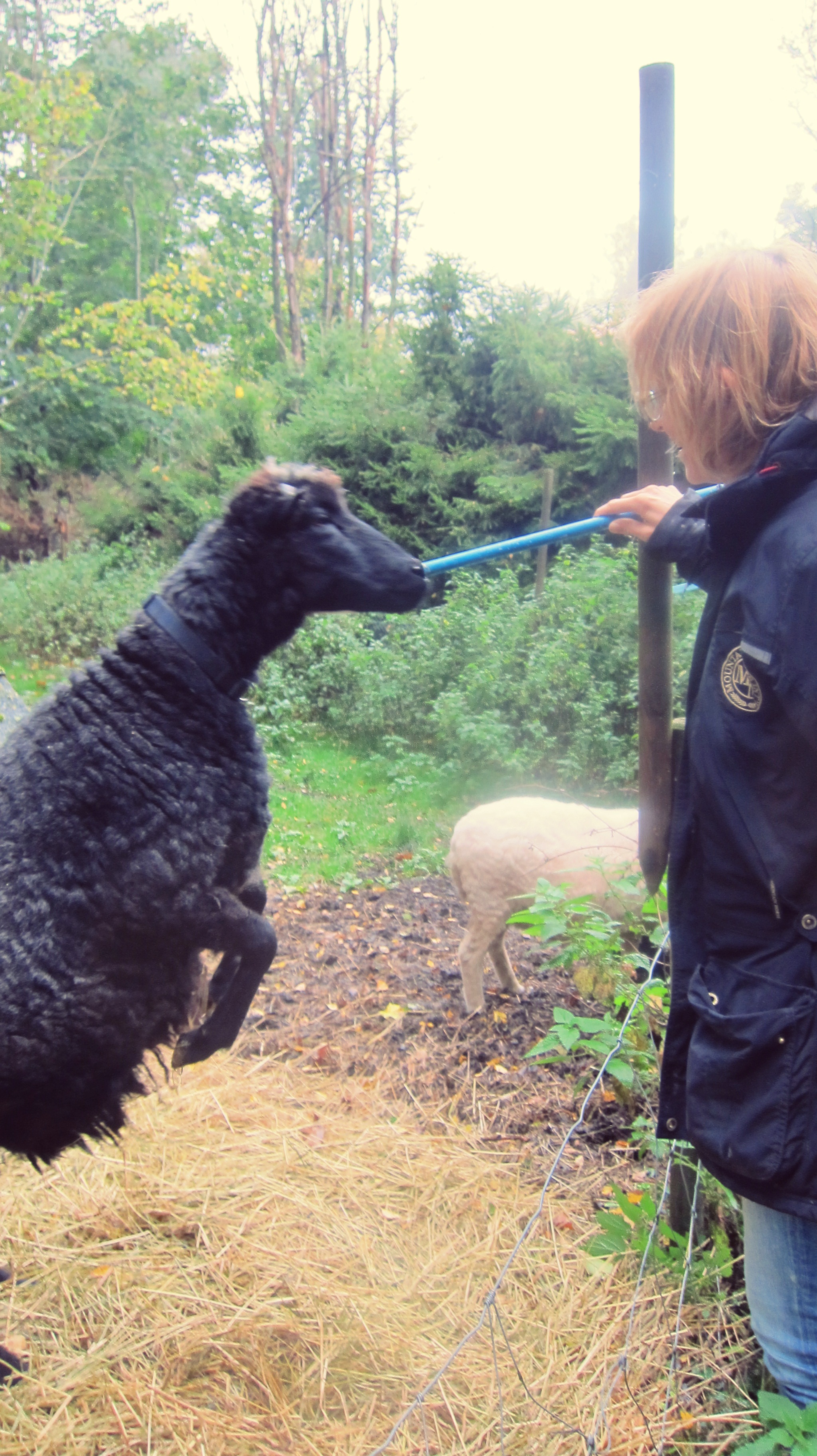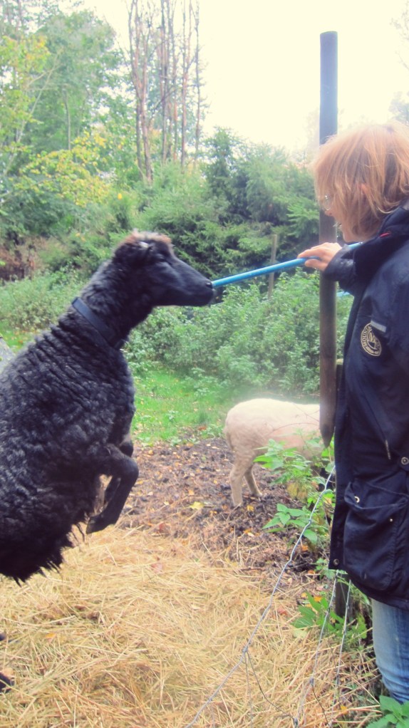 Var en riktigt regnig morgon, när jag sprang runt och förberedde inför en praktisk träningsdag med fåren. Eftersom fåren hatar regn var jag mycket fundersam hur den här dagen skulle bli. Men vi hade tur med allt, fåren var på ett riktigt träningshumör och var mycket glada över att få arbeta igen! Vi varvade förmiddagen med allt ifrån teori och lekar till konkreta exempel med berättelser på hur man kan tillämpa positiv förstärkning i vardagen. Vi pratade om att göra det man vill och samtidigt må bra på vägen. Blev mest fascinerad över alla insikter som kom genom övningarna där vi tränade och övade på varandra.